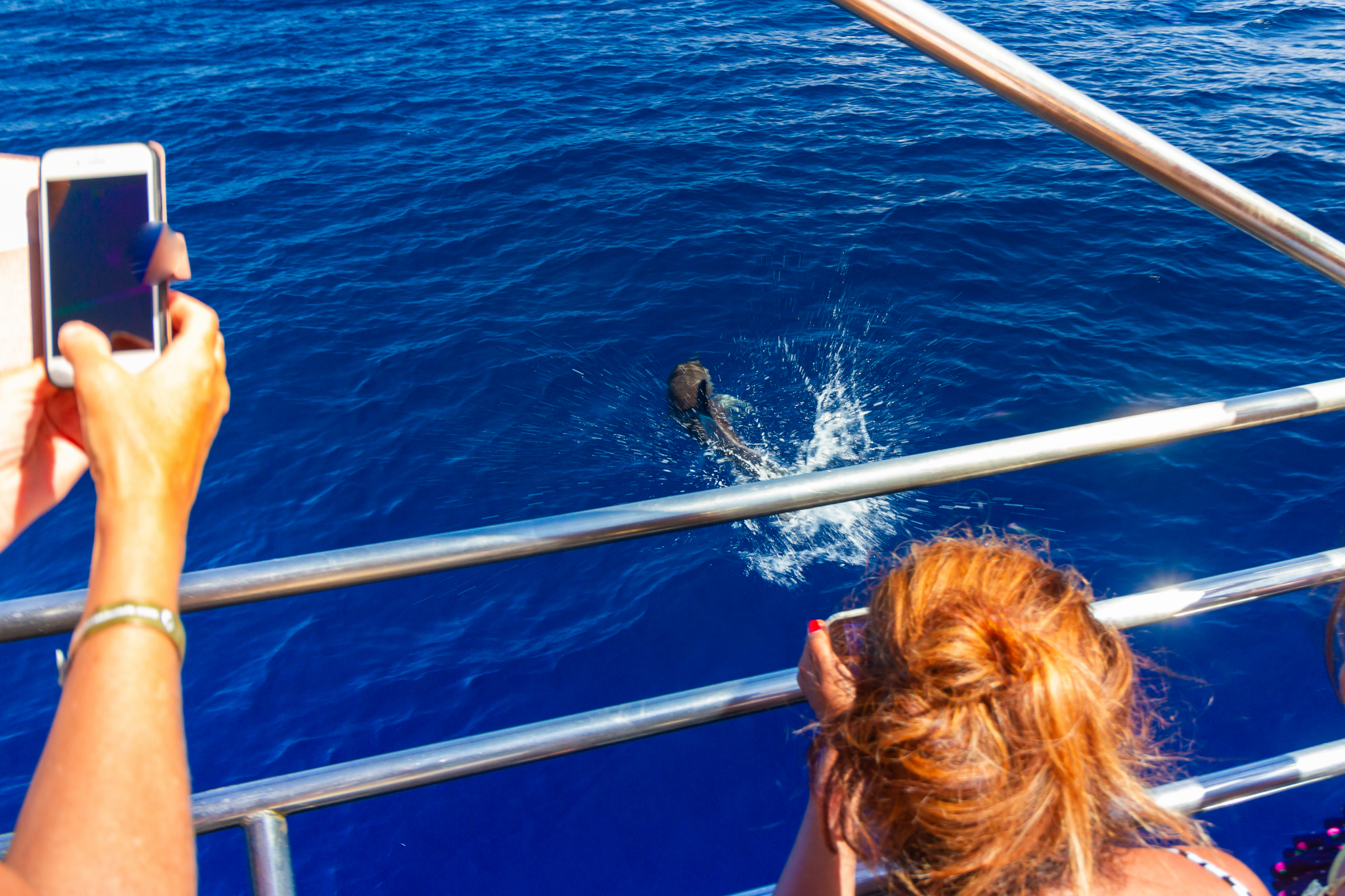 The open and stable Supercat is a great boat to go on to see them swimming and jumping free in the ocean. You’ll also see flying fish and often turtles, pilot whales and even big whales.