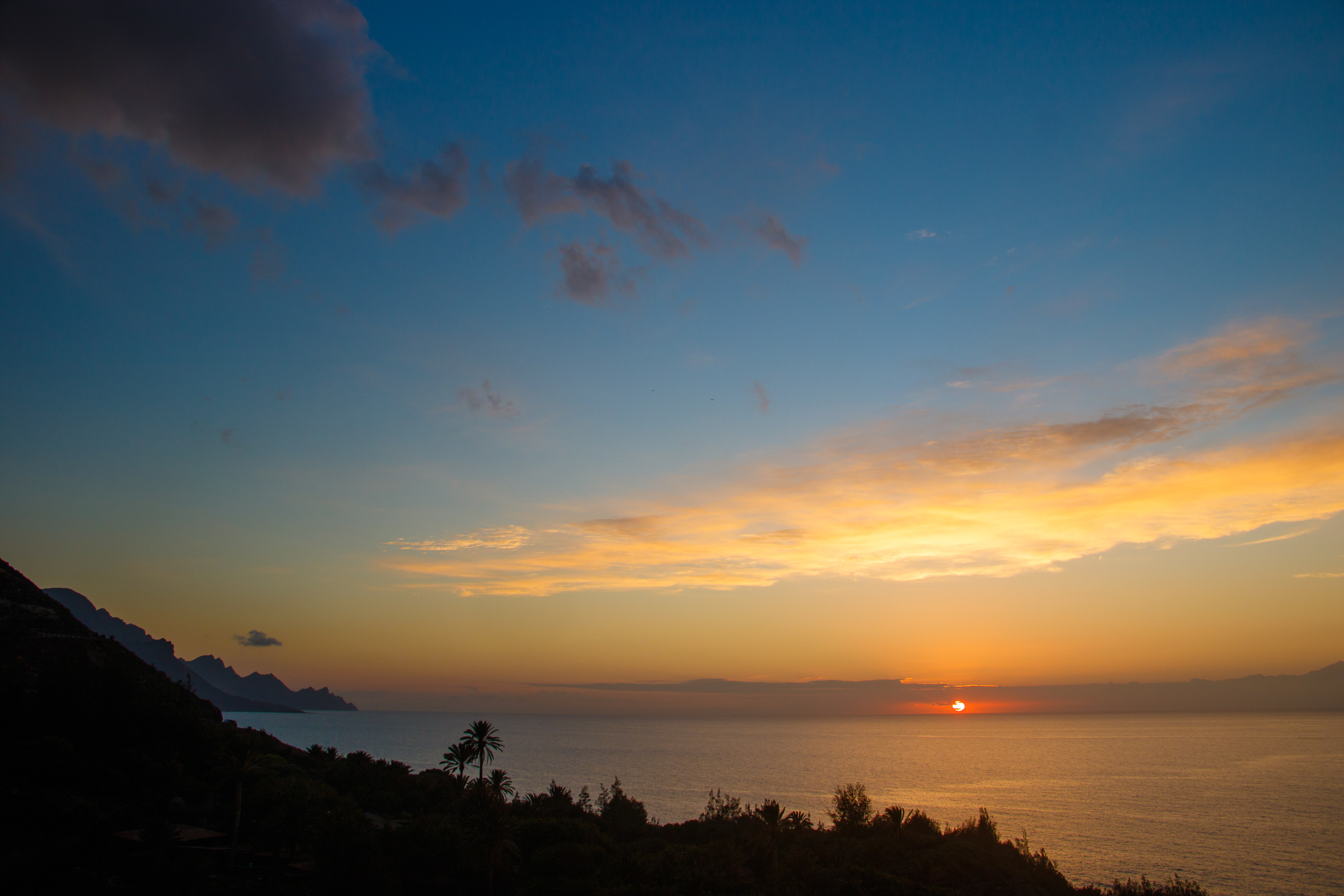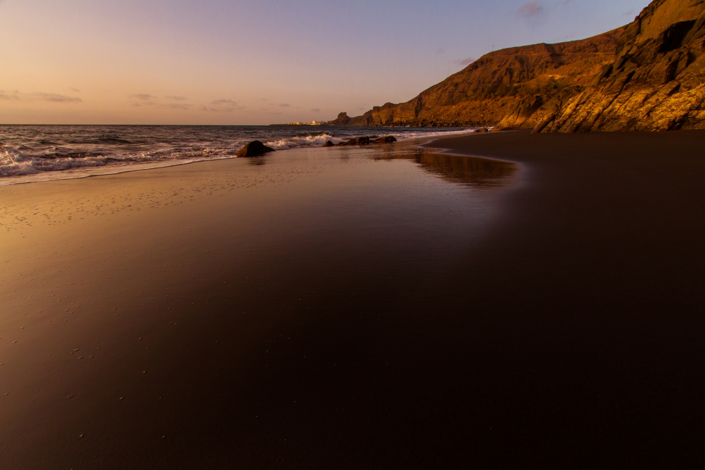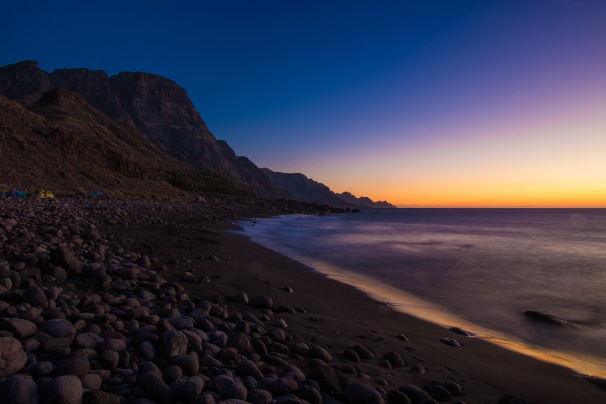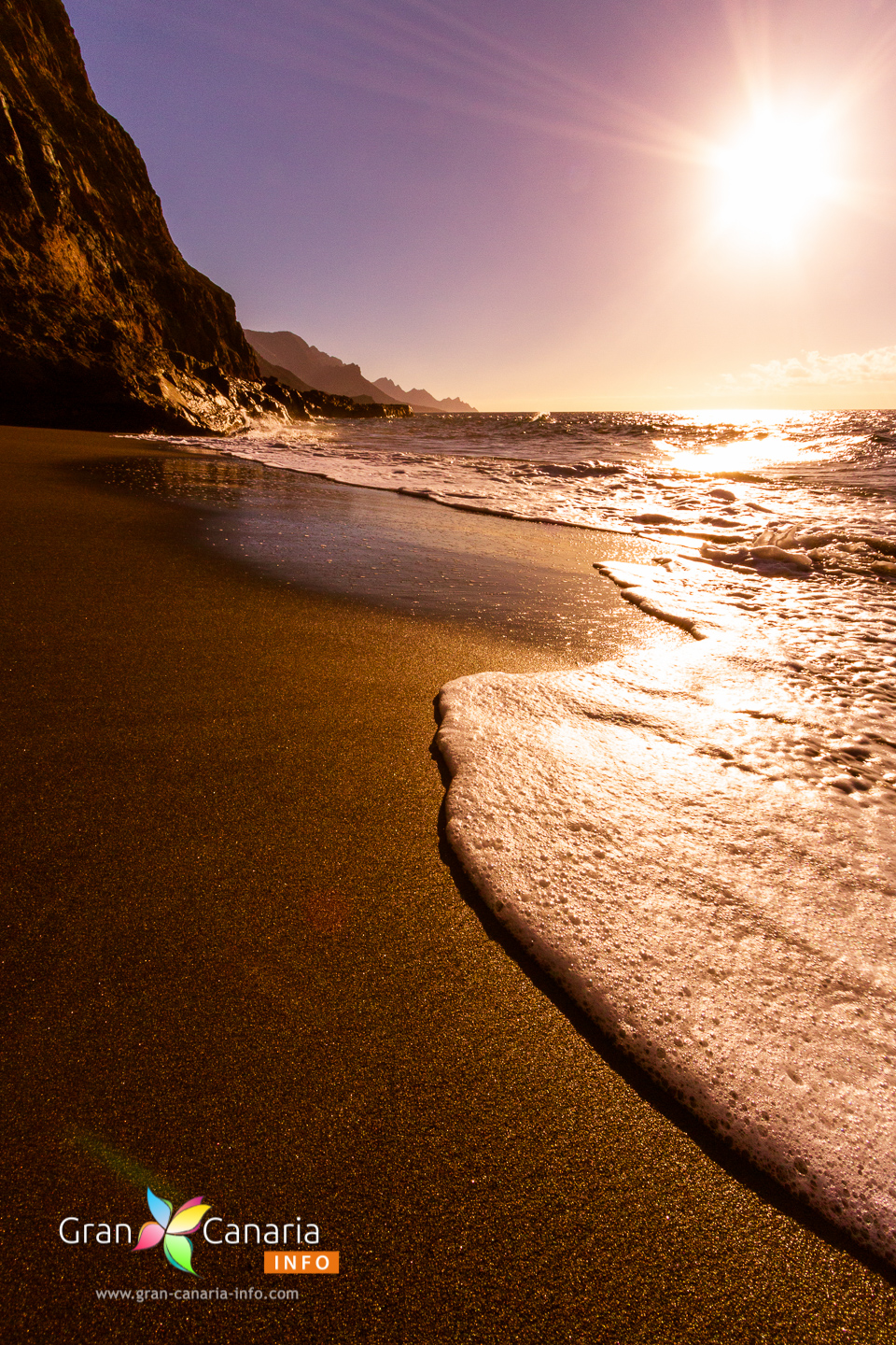 The views from the sand are fantastic as you see Tenerife and Teide on the horizon, Puerto de las Nieves to the north and the rugged west coast stretching out to the south. Take care swimming at