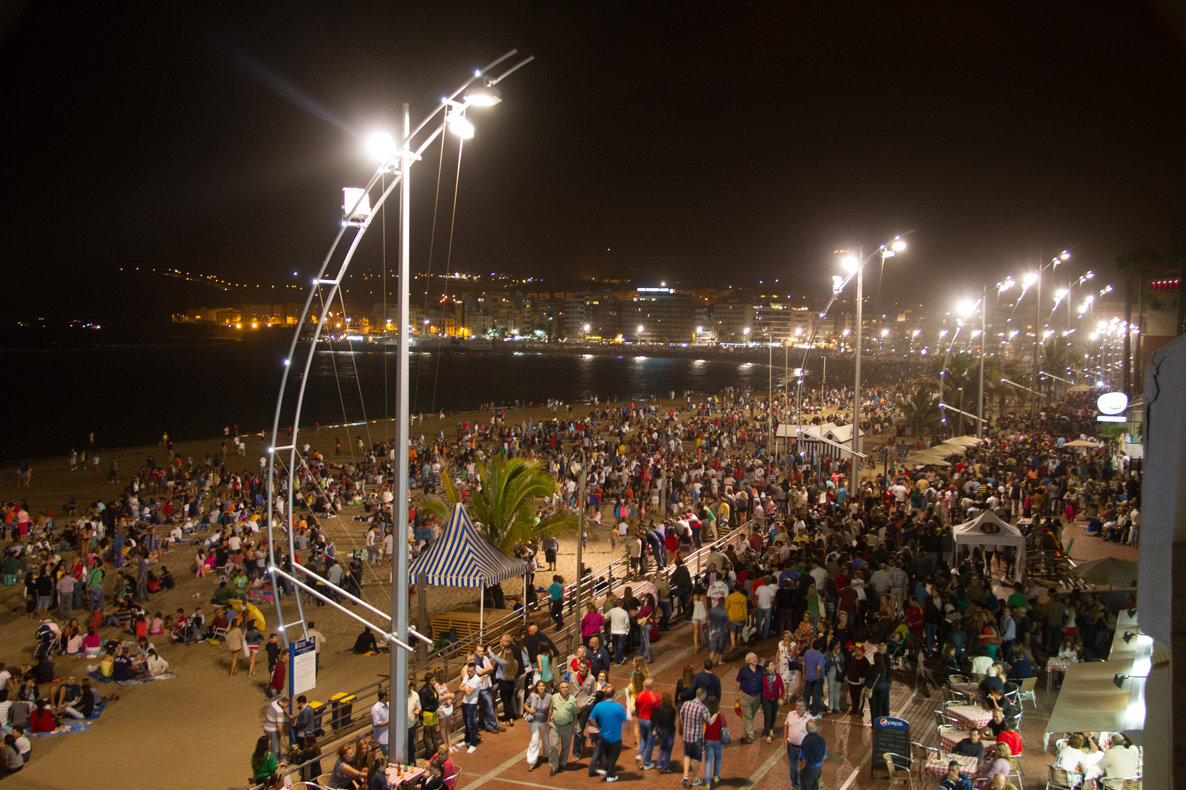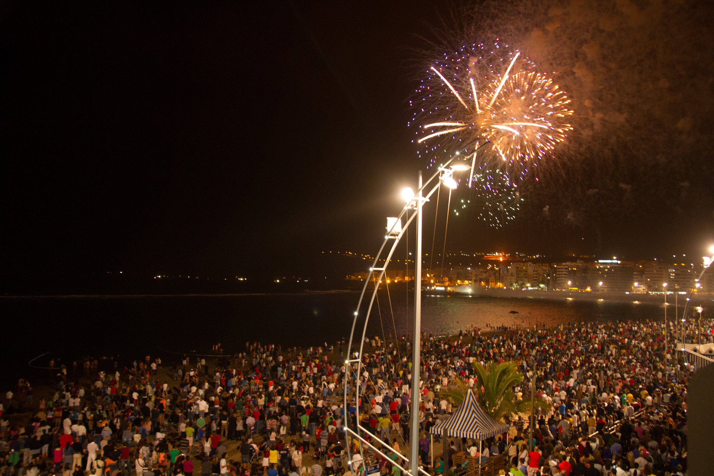 Playa del Ingles puts on a beach party at the Anexo 1 shopping centre down by the beach. There's a drumming procession, fire procession and a huge bonfire plus fireworks at midnight, live music and DJ.