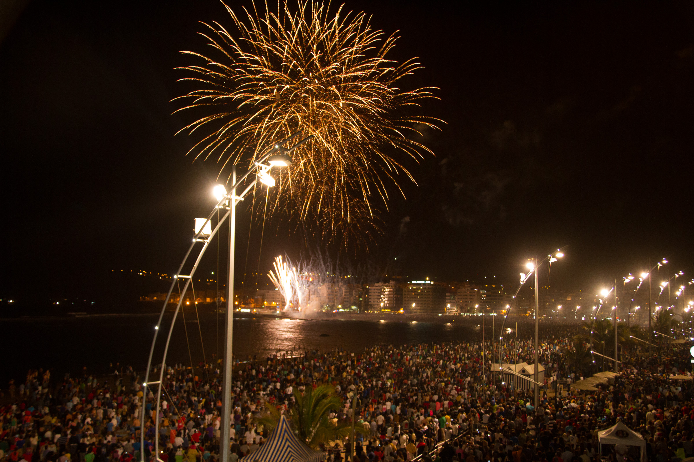 San Juan is a big thing in Las Palmas as it coincides with the anniversary of the founding of the city (538 years in 2016). Las Canteras is always crowded with people and big groups gather for communal picnics and singalongs. There's live music at the northern tip of the beach and the fireworks at midnight are always worth staying up for. The party goes on late into the night.