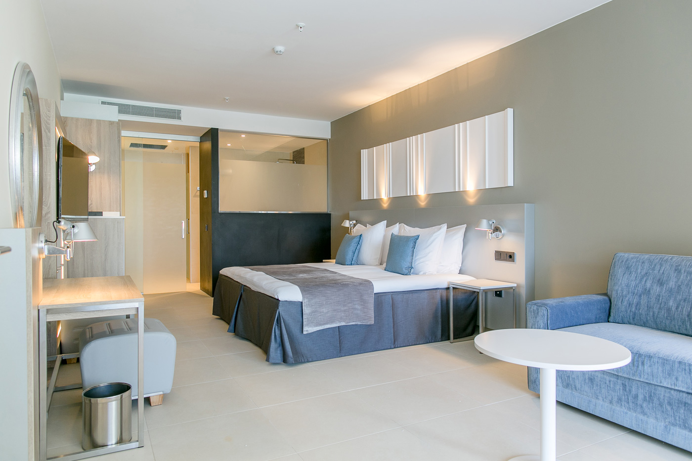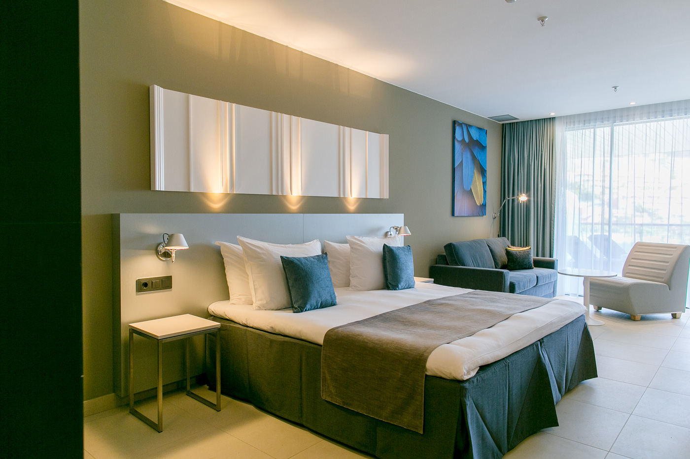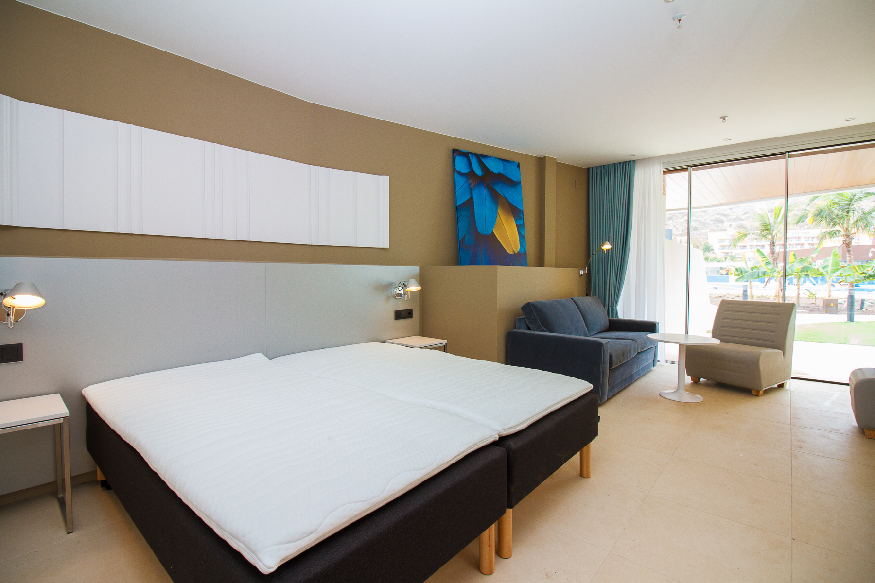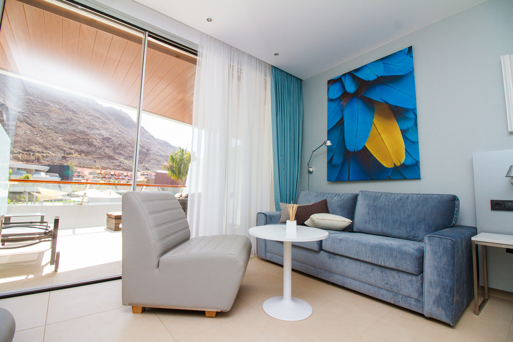 The rooms are big and decorated in an elegant modern style with big comfy beds (we tested them), big bathrooms and those huge rain showers that mean nobody ever wants to reach for their fluffy towel. Each room has a big terrace attached and the low rise design and almost constant sunshine in Mogán means that everyone gets their own personal sun trap.
