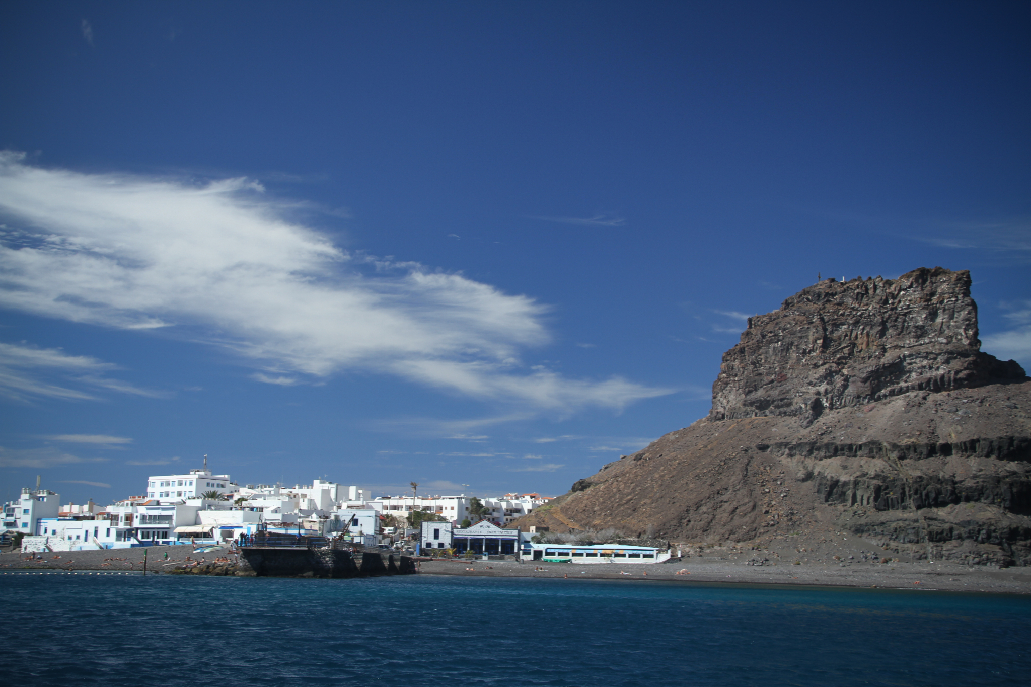 Puerto de Las Nieves’ iconic Dedo de Dios (Finger of God) rock sadly lost its finger during a storm a few years ago. You can see the knuckle by looking left from the end of the jetty.