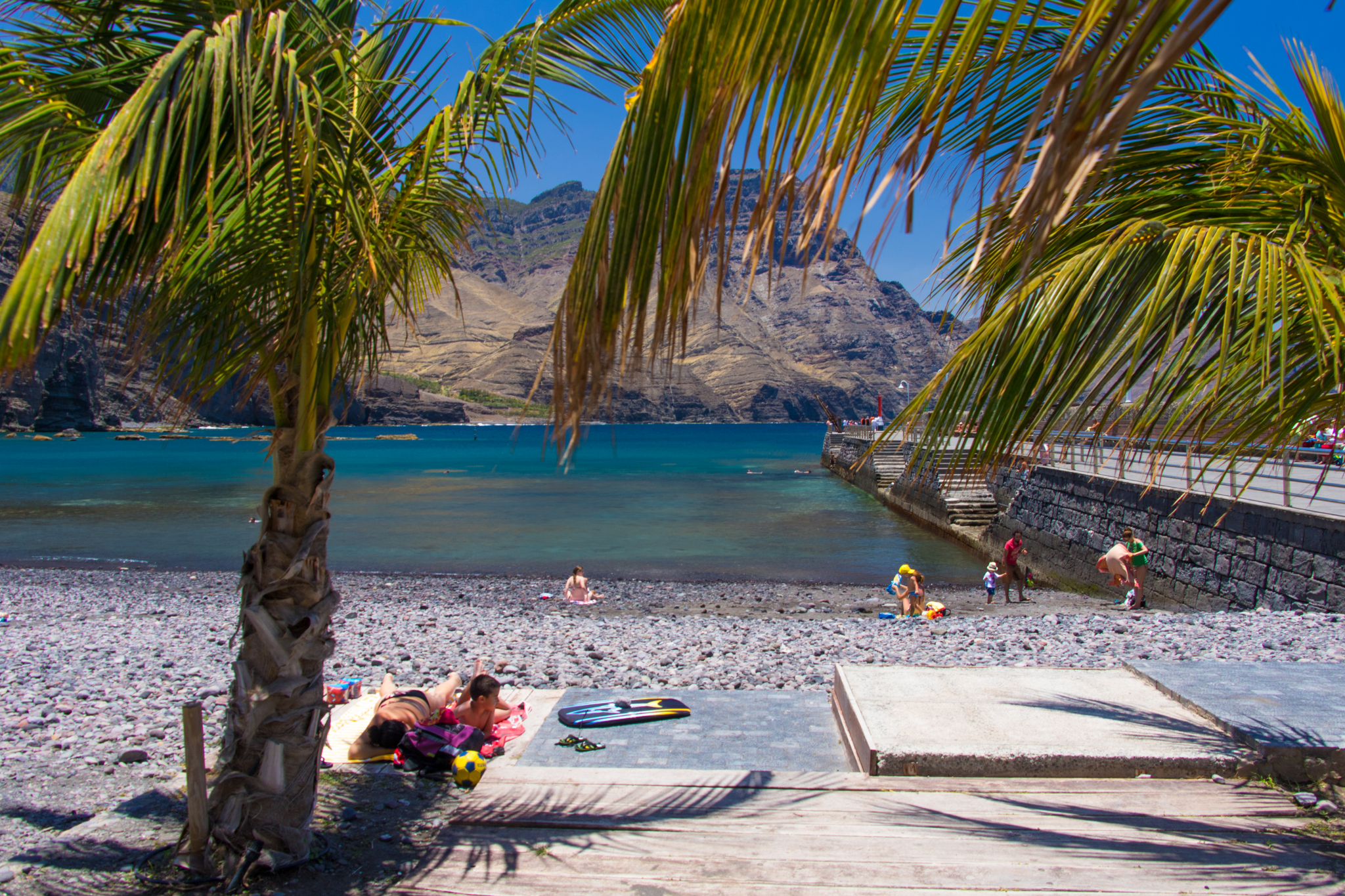 Further away, to the south, is Guayedra Beach: A firm favourite for locals and people from the nearby town of Galdar. The walk from Puerto de Las Nieves has some steep drop-offs and takes about an hour-and-a-half. The beach is mixed sand and pebbles (no facilities) and mostly nudist.