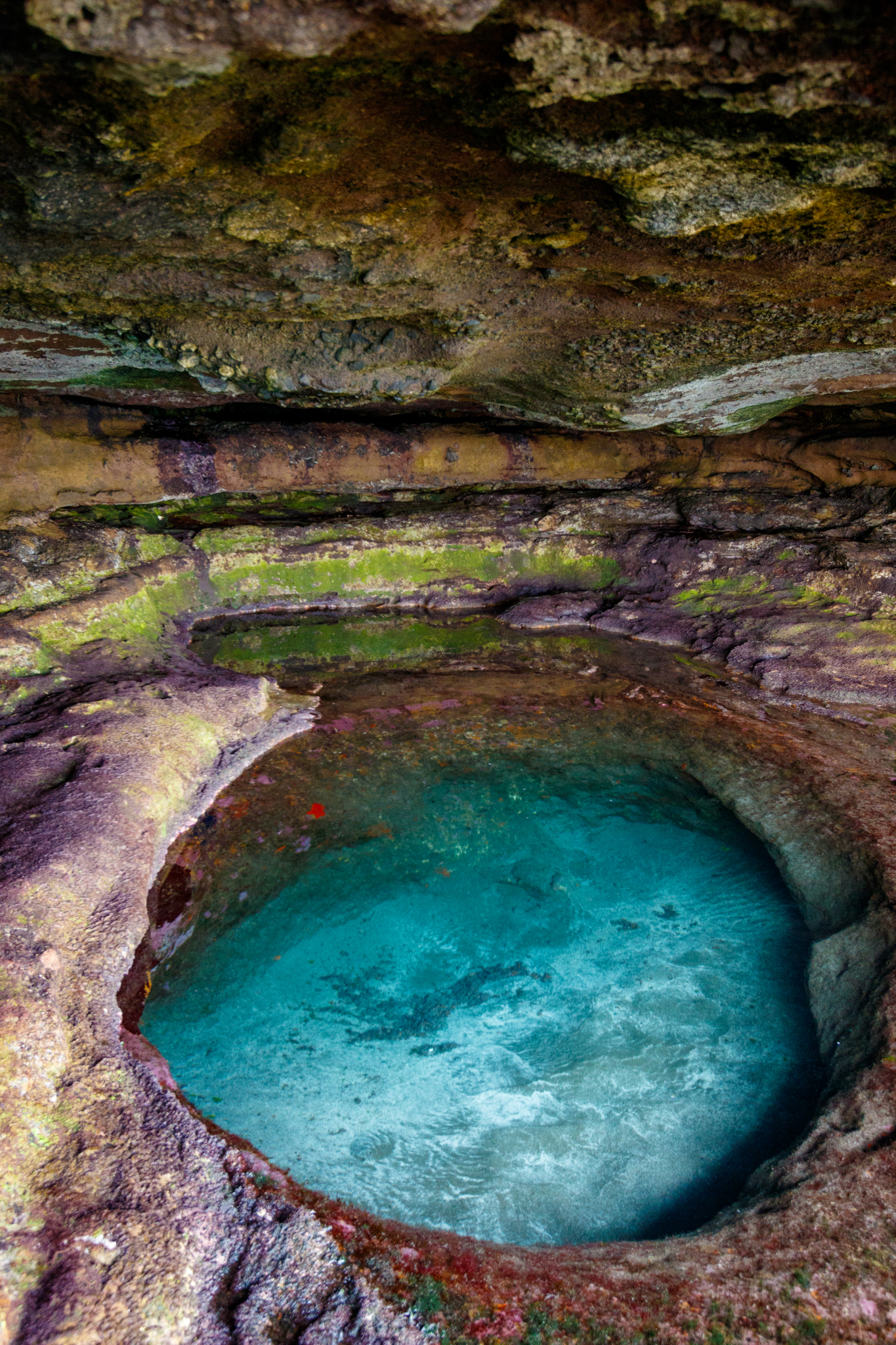In front of the pool, on the rock shelf, there's another pool teeming with blennies because locals fish off the top of the cliff and drop bread and bait into the pool.
