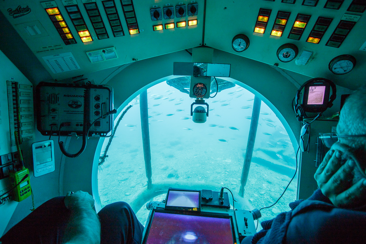 Lots of fish hang around by the windows at the front of the submarine and if you sit here you can also see the pilot and the view out of the front windows. The back is pretty cool too as you get to see the propellers and how the fish know exactly how to avoid them. Don't worry if you sit in the middle as